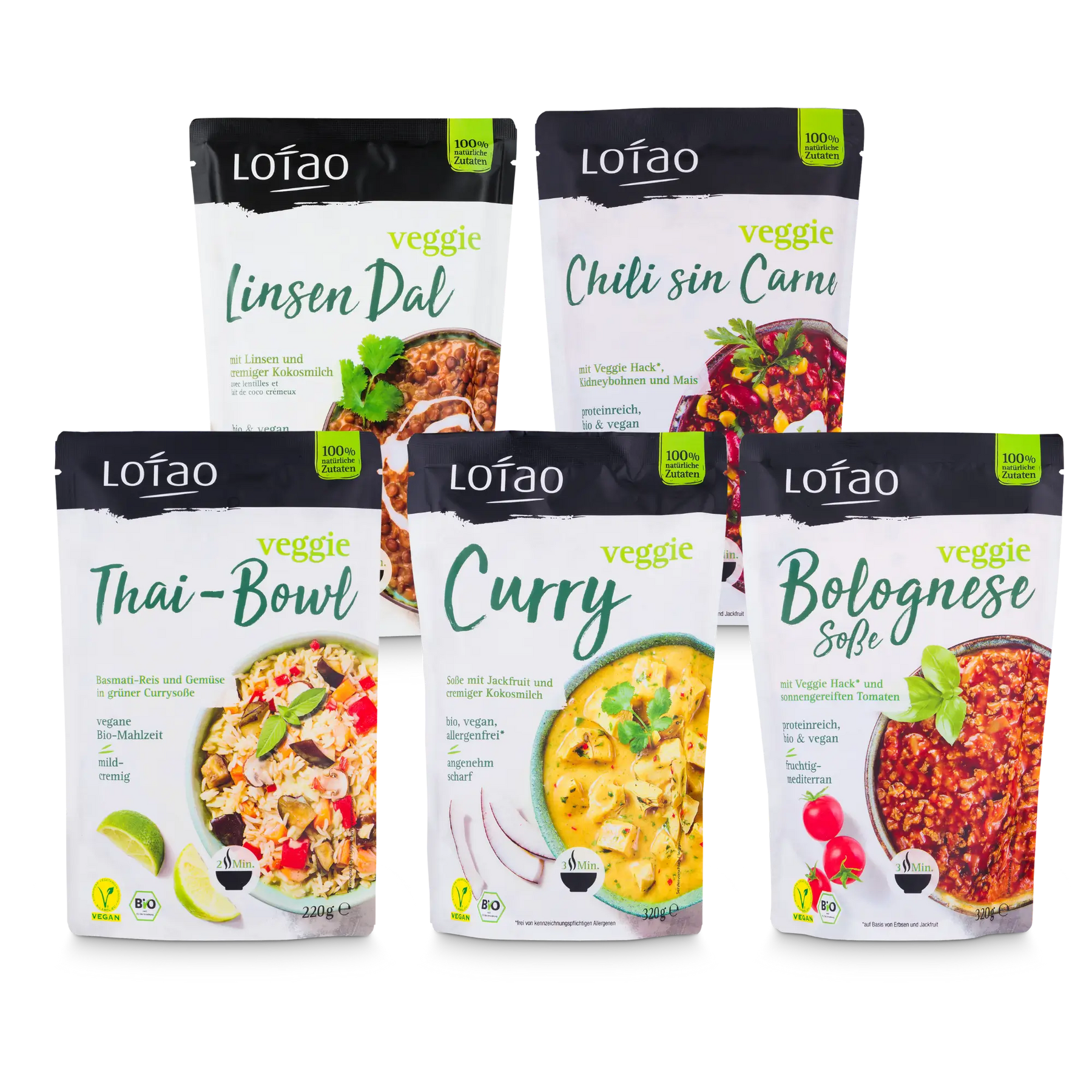 Unsere Genussbox bietet dir schnelle, vollwertige Bowls und aromatische Saucen – ideal für alle, die wenig Zeit, aber hohe Ansprüche an Geschmack und Qualität haben. In nur 3 Minuten zauberst du dir eine sättigende Mahlzeit oder eine Sauce, zu der du nur noch eine Beilage zubereiten musst. Natürlich vegan und in Bio-Qualität. Unsere Produkte kommen ohne künstliche Zusätze, Konservierungsstoffe und Geschmacksverstärker aus. So sparst du nur an Zeit – nicht am Genuss!