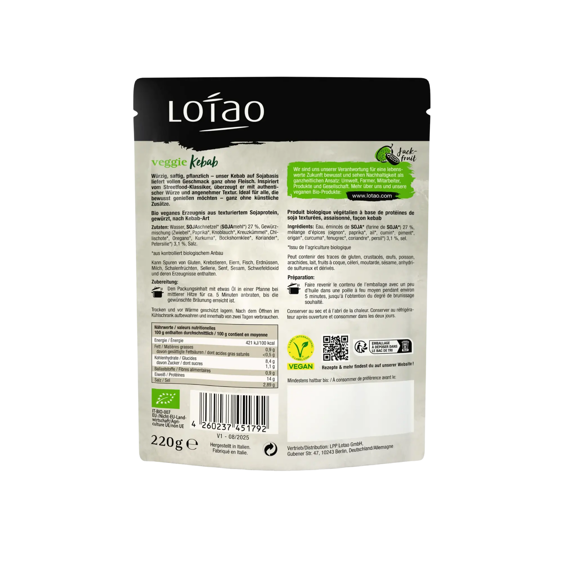 Hergestellt mit Zutaten aus kontrolliert biologischem Anbau und ohne künstliche Zusätze oder Geschmacksverstärker, bietet Veggie Kebab eine ehrliche Grundlage für viele Gerichte. Ob im warmen Fladenbrot, zu frischem Gemüse, zusammen mit Reis, Ofenkartoffeln oder als Teil einer bunten Bowl, die Schnetzel lassen sich vielseitig einsetzen.