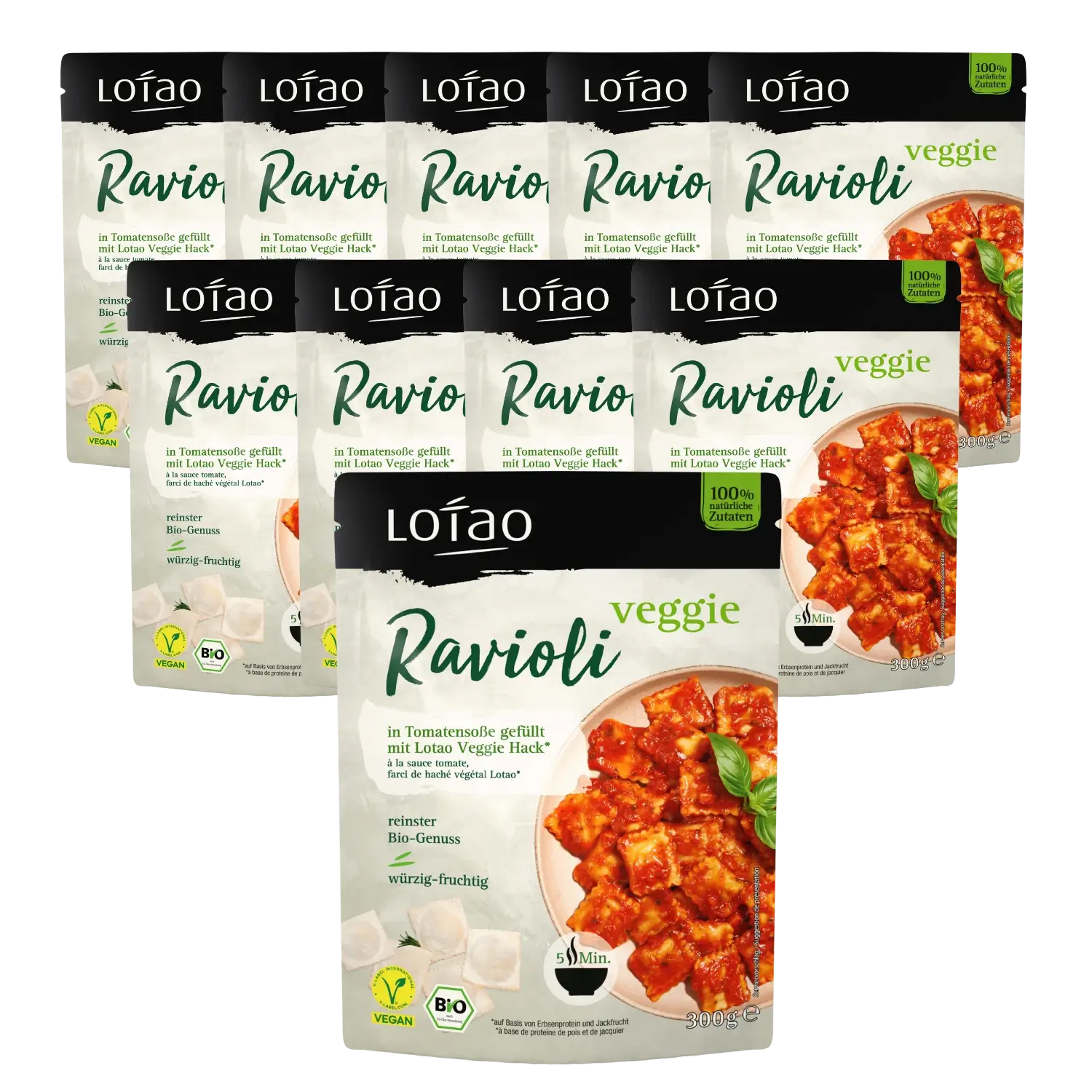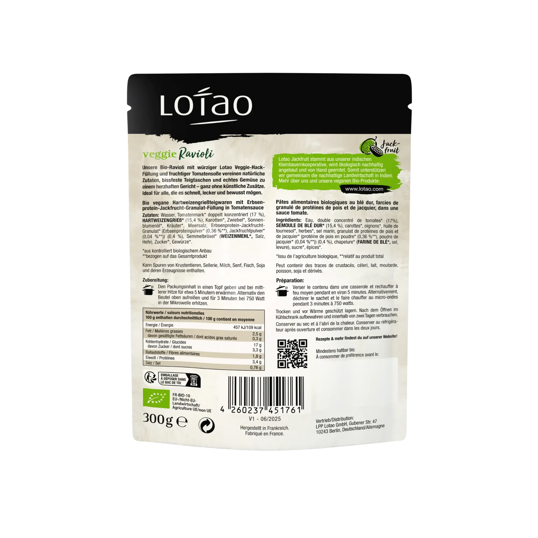 Entdecke unsere köstlichen Bio-Ravioli in fruchtiger Tomatensoße – ein herzhaftes Lieblingsgericht mit einer aromatischen Füllung aus Lotao Veggie Hack auf Basis von Jackfruit und Erbsenprotein. Die angenehm bissfeste Konsistenz kombiniert sich mit einer mediterran abgeschmeckten Tomatensoße zu einem runden, natürlichen Geschmackserlebnis.